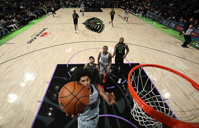 本场比赛中,马刺的替补后场新秀迪伦-哈珀(Dylan Harper)的表现绝对算得上是令人刮目相看。哈珀全场出场25分51秒,投篮16中10,三分线外3中1,罚球2中1,拿下了22分3篮板6助攻的数据,还有2次失误,正负值为+3。哈珀在进攻端不断对对手内线发起冲击,他的突破能力和终结能力都相当不错,他也是拿下了大量的分数。不仅如此,他在关键时刻也能够命中投篮帮助球队稳住局面,证明了自己有着一颗大心脏。哈珀在传球和组织进攻方面的表现同样是非常突出的,同样能够起到不错的效果。总体来看,哈珀在本场比赛中也是将自己各方面的特点都发挥了出来,要不是有他的神勇状态,结合球队两名先发后场球员的糟糕手感和状态,球队可能早就输掉比赛了,他简直就是拯救了马刺于水火之中。